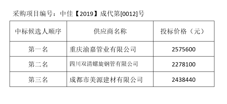 內(nèi)江市水務(wù)有限責(zé)任公司螺旋鋼管管材及管件采購項目評標(biāo)結(jié)果公示