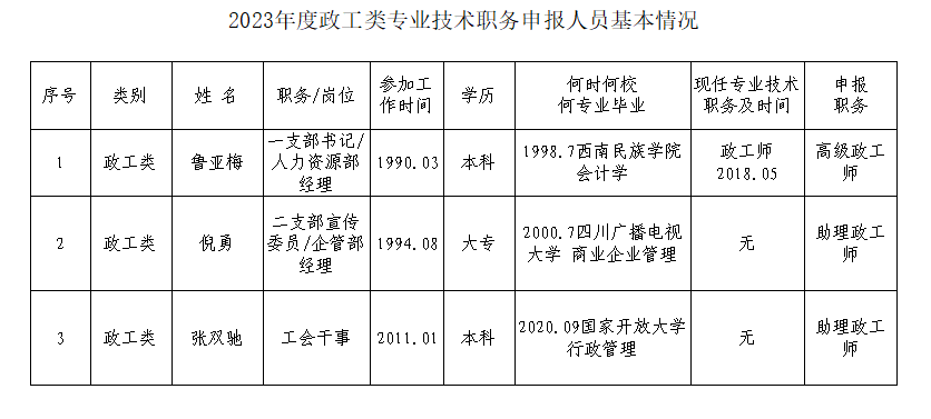 經(jīng)審核,魯亞梅同志符合申報高級政工師任職資格;吳柏霖、張茜、李昊謙3名同志符合申報工程師任職資格;李斌、楊程翔、劉靈漾、李永潔、黃俊雄、曾鑫、郭炯宏7名同志符合申報助理工程師任職資格;倪勇、張雙馳2名同志符合申報助理政工師任職資格。現(xiàn)對其申報基本情況予以公示。公示期限自9月18日至9月22日。如有異議,請在公示期限內(nèi)通過書面或其他形式向公司人力資源部反映。