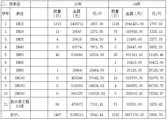 內(nèi)江市水務(wù)有限責(zé)任公司2023-2024供水安裝平均價格公示