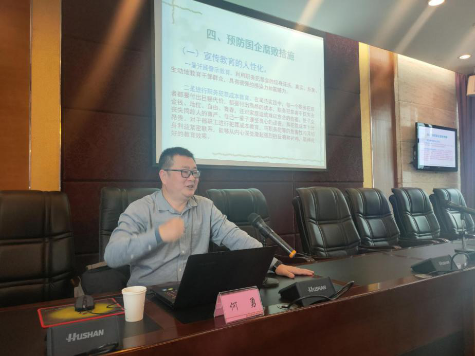 講座上,何勇以“國(guó)有企業(yè)預(yù)防腐敗實(shí)踐探索”為題,從建國(guó)以來(lái)反腐敗歷史的簡(jiǎn)要回顧、當(dāng)前國(guó)企領(lǐng)域反腐敗的形勢(shì)、水務(wù)企業(yè)違紀(jì)違法典型案例、預(yù)防國(guó)企腐敗措施四個(gè)方面,剖析腐敗根源,深入淺出地將國(guó)有企業(yè)預(yù)腐防變工作做了詳細(xì)的梳理和講解,具有很強(qiáng)的教育性和警示性。公司黨委副書記、總經(jīng)理李濤結(jié)合講座內(nèi)容,對(duì)進(jìn)一步抓好黨風(fēng)廉政工作提了四點(diǎn)要求:一是要強(qiáng)化政治定力;二是要抓實(shí)紀(jì)法學(xué)習(xí);三是要堅(jiān)持嚴(yán)于律己;四是要自覺接受監(jiān)督。李濤強(qiáng)調(diào),講座的目的在于進(jìn)一步提高干部職工對(duì)黨風(fēng)廉政建設(shè)重要性的認(rèn)識(shí),切實(shí)加強(qiáng)廉潔自律教育,將黨風(fēng)廉政建設(shè)不斷引向深入。