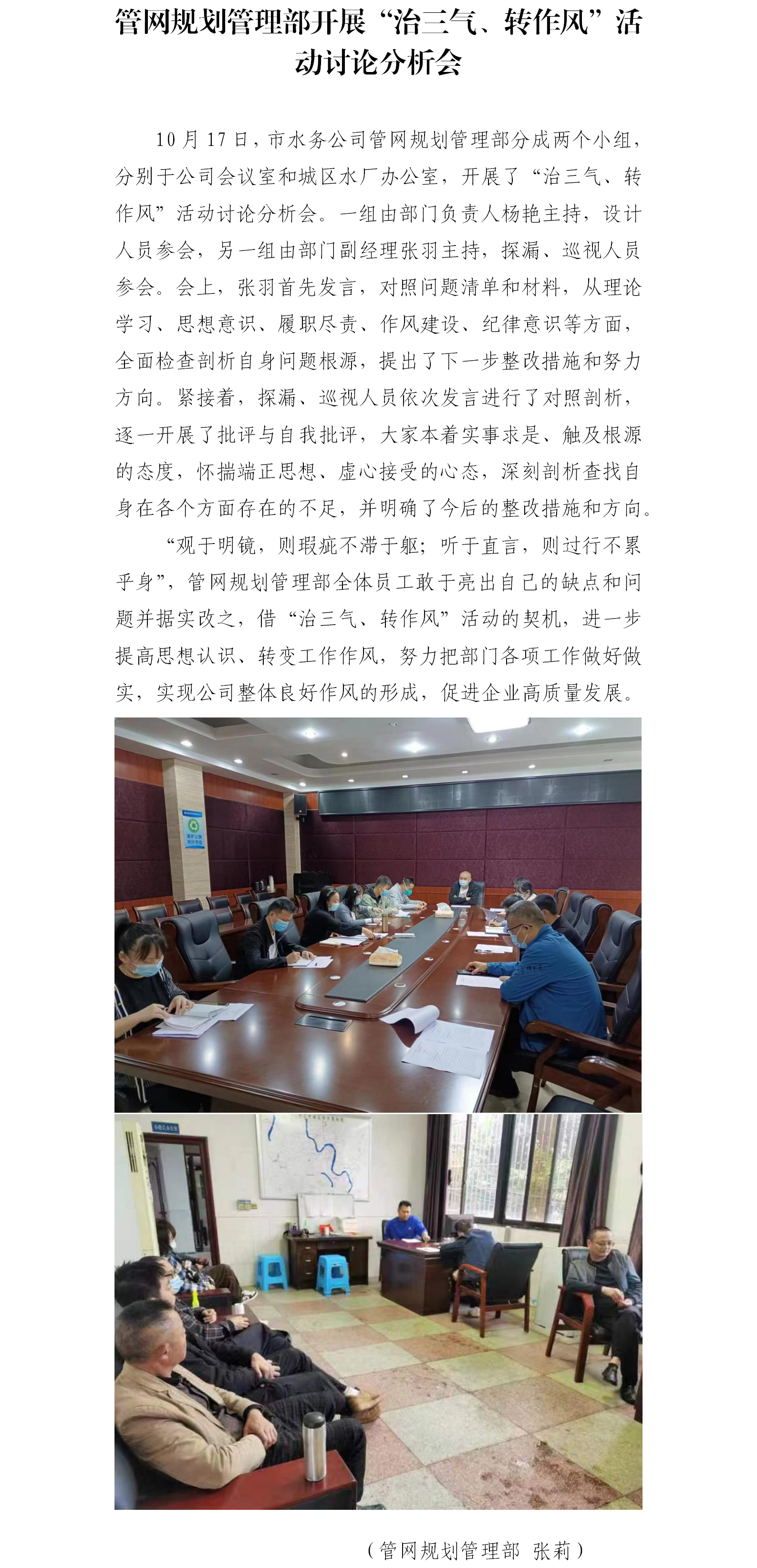 管網(wǎng)規(guī)劃管理部開(kāi)展“治三氣、轉(zhuǎn)作風(fēng)”活動(dòng)討論分析會(huì)
