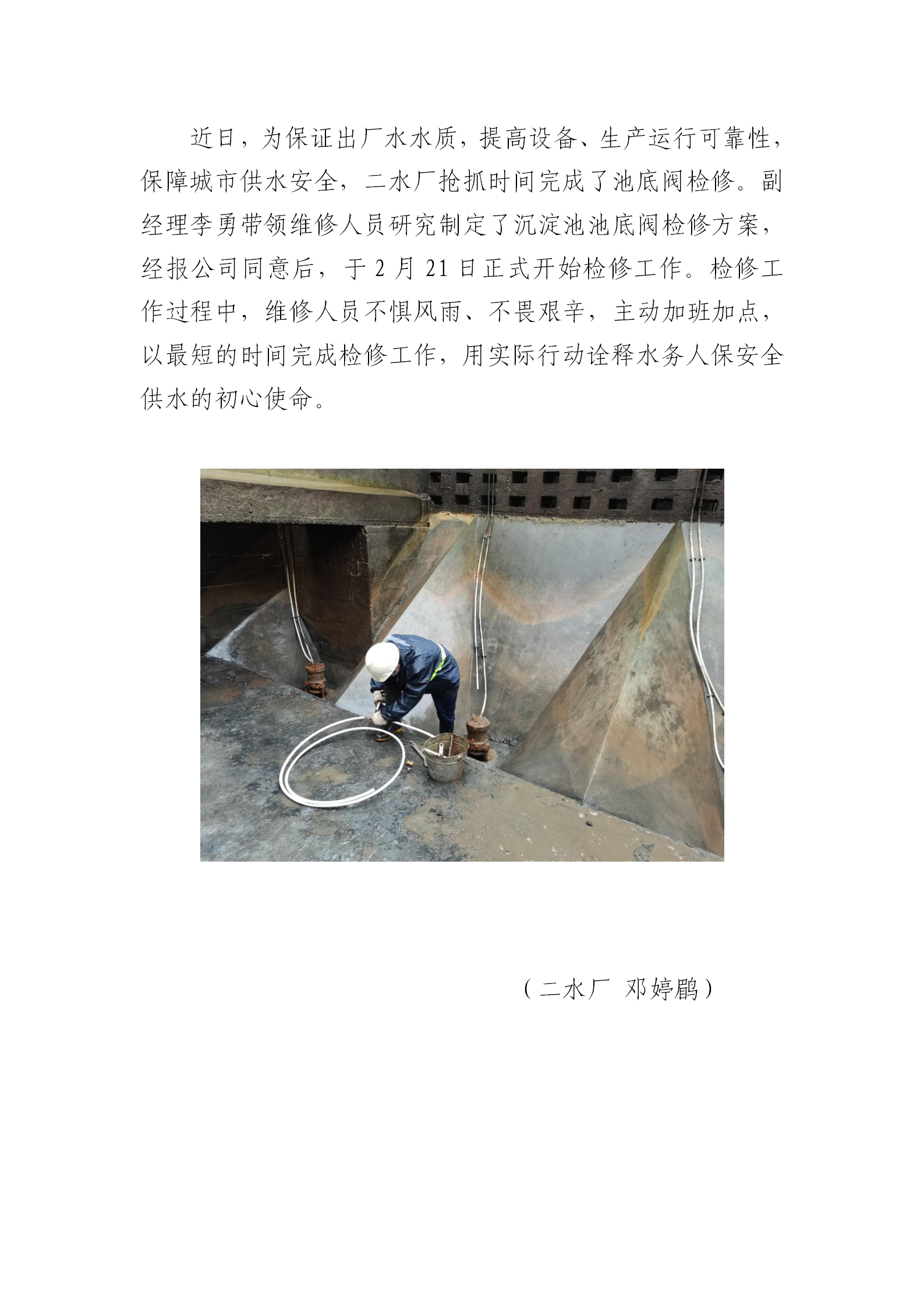 二水廠檢修池底閥,確保水質(zhì)安全