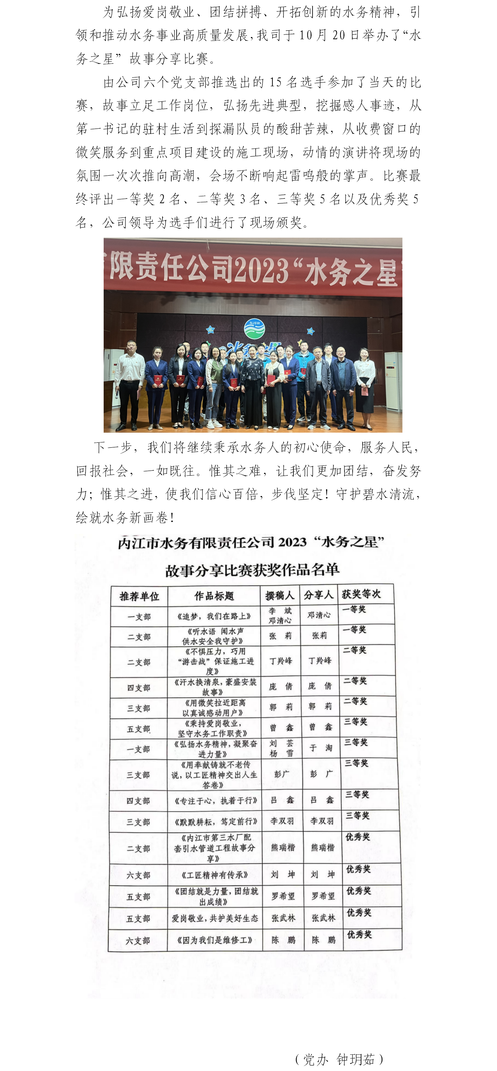 分享敬業(yè)故事 共鑄水務(wù)輝煌