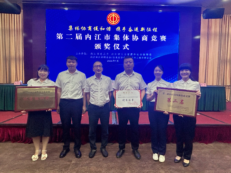 7月25日,由市總工會(huì)、市人社局、市企業(yè)家聯(lián)合會(huì)、市工商聯(lián)聯(lián)合舉辦的“集體協(xié)商促和諧 攜手奮進(jìn)新征程”第二屆內(nèi)江市集體協(xié)商競賽圓滿落幕。市水務(wù)公司代表隊(duì)經(jīng)過初賽、復(fù)賽和決賽三輪比拼,在12支隊(duì)伍的激烈角逐中脫穎而出,最終榮獲第二名。