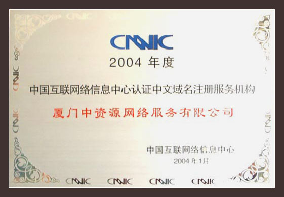 2004年度CNNIC認(rèn)證中文域名注冊服務(wù)機(jī)構(gòu)