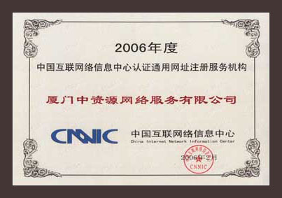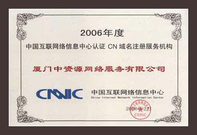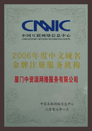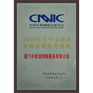 2006年度中文域名金牌注冊服務(wù)機(jī)構(gòu)