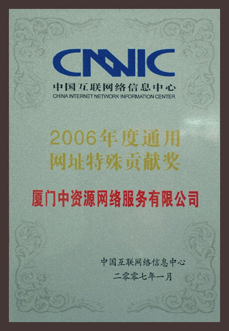 2006年度通用網(wǎng)址特殊貢獻(xiàn)獎(jiǎng)
