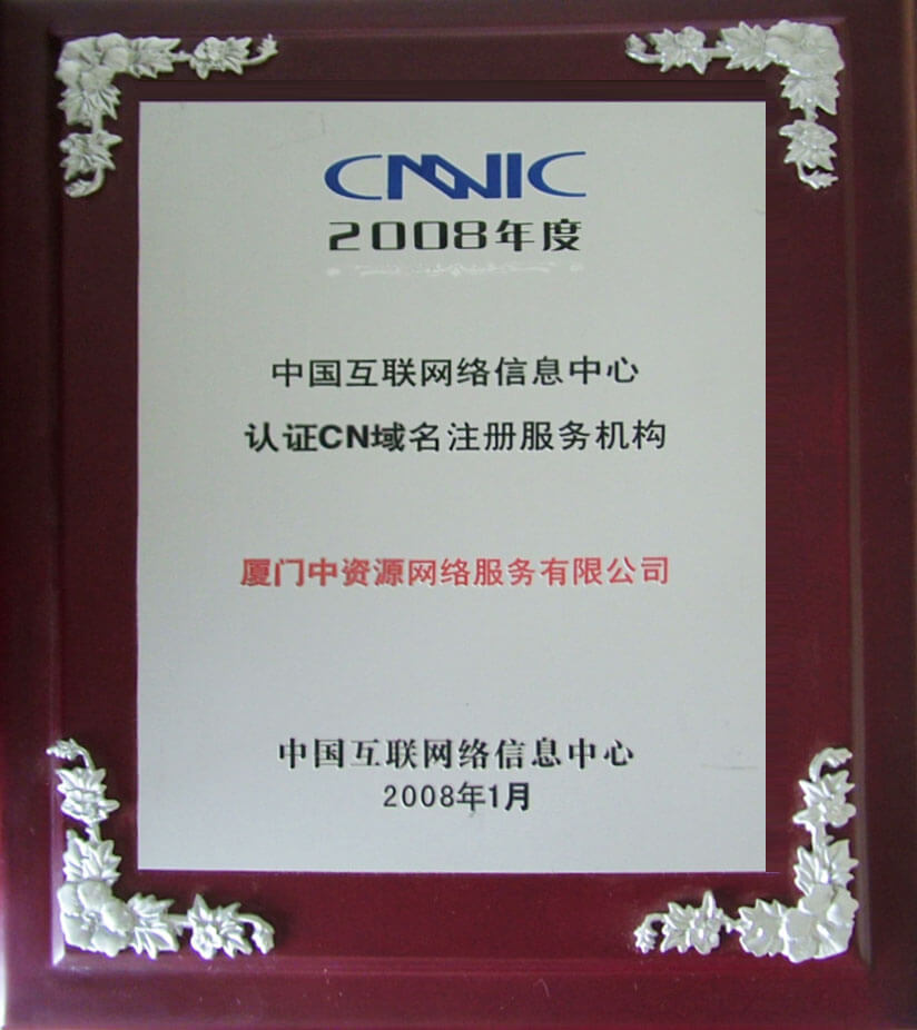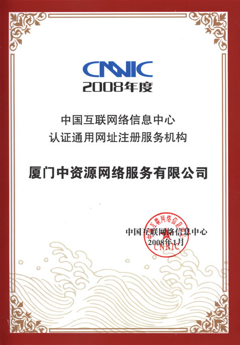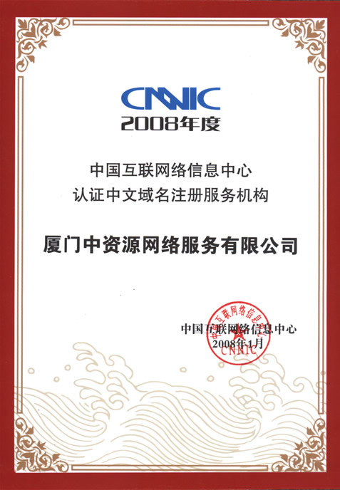 CCNNIC 2008年度中國互聯(lián)網(wǎng)絡(luò)信息中心認(rèn)證中文域名注冊服務(wù)機(jī)構(gòu)