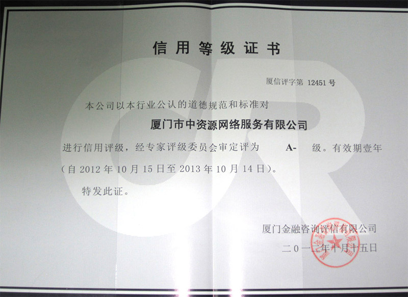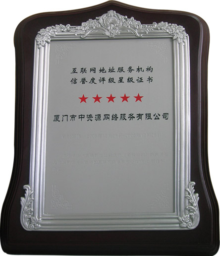 互聯(lián)網(wǎng)地址服務(wù)機(jī)構(gòu)信譽(yù)度評級五星級證書