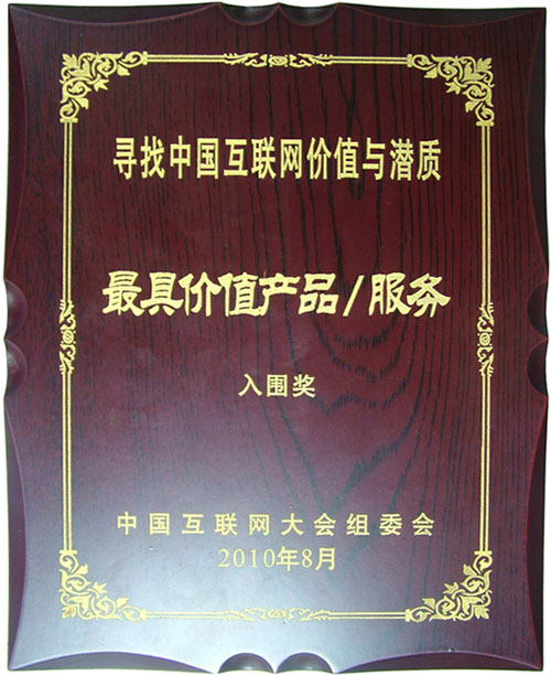 2010互聯(lián)網(wǎng)大會(huì)最具價(jià)值/服務(wù) 入圍獎(jiǎng)