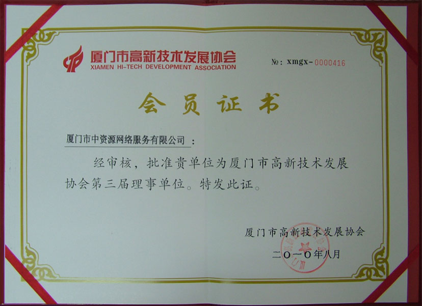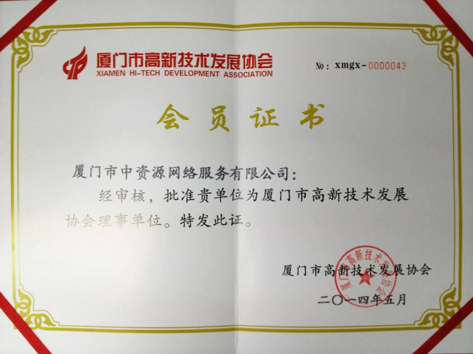 榮獲廈門市高新技術(shù)發(fā)展協(xié)會(huì)第三屆理事單位