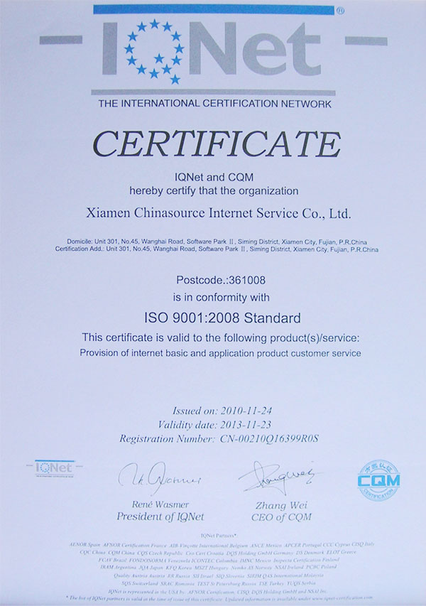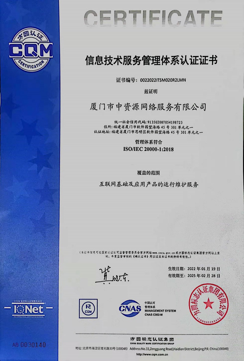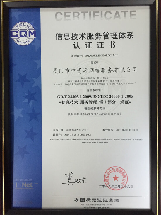 CQM信息技術(shù)服務(wù)管理體系認(rèn)證ISO/IEC 20000證書