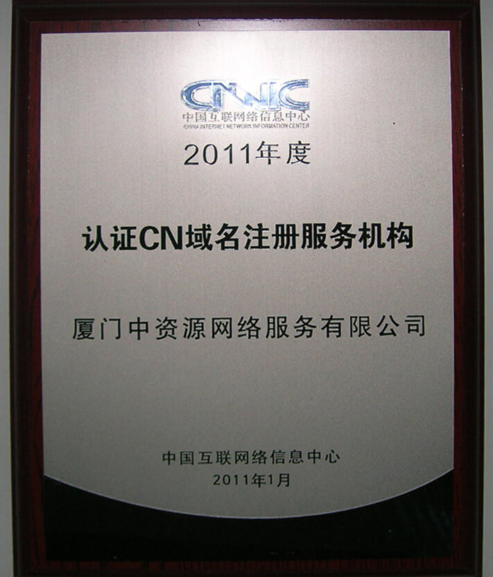 2011年度認(rèn)證CN域名注冊服務(wù)機(jī)構(gòu)