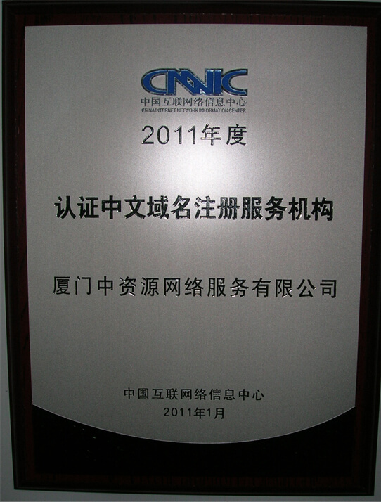 2011年度認(rèn)證中文域名注冊服務(wù)機(jī)構(gòu)