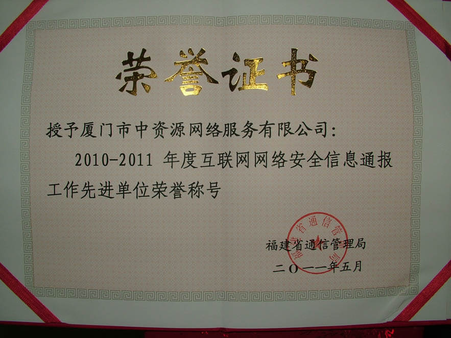 2011-2012年度福建省互聯(lián)網(wǎng)行業(yè)自律貢獻(xiàn)獎(jiǎng)