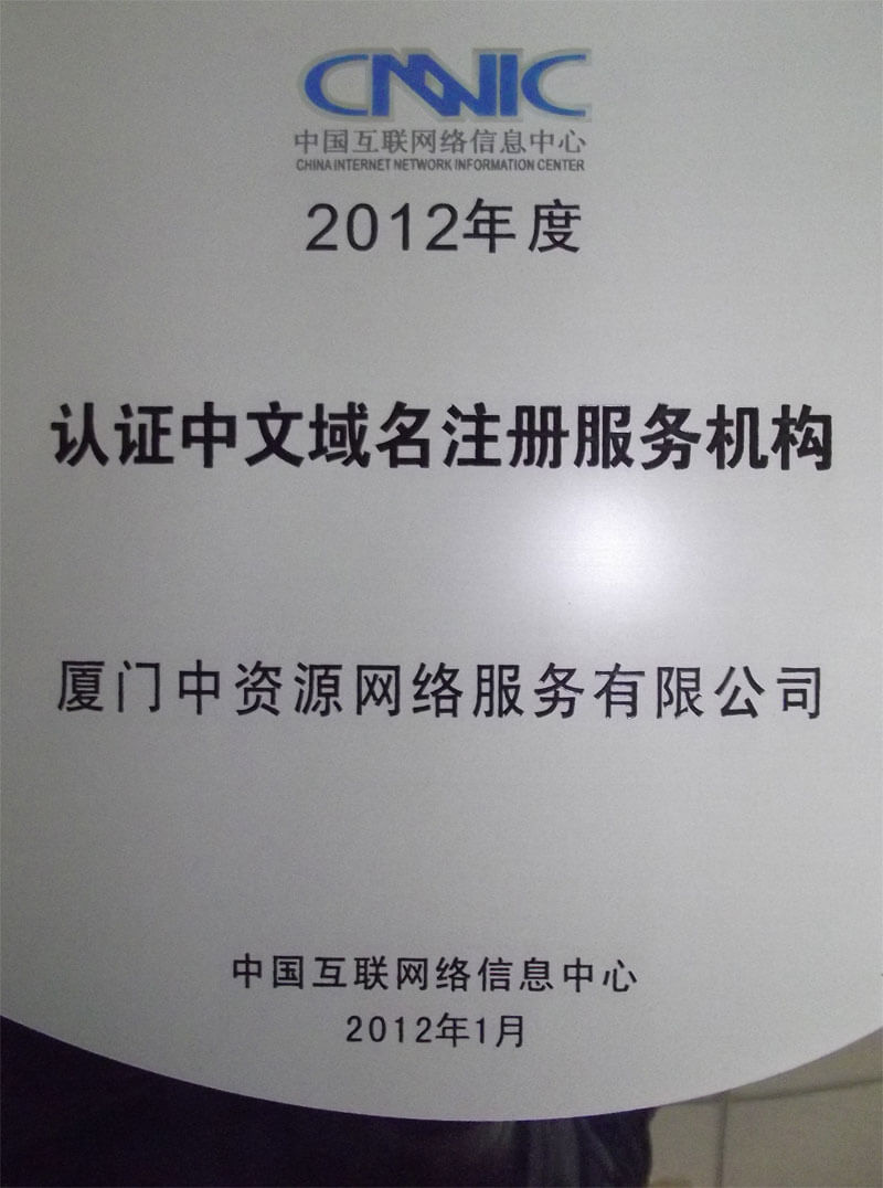 2012年度認(rèn)證中文域名注冊服務(wù)機(jī)構(gòu)
