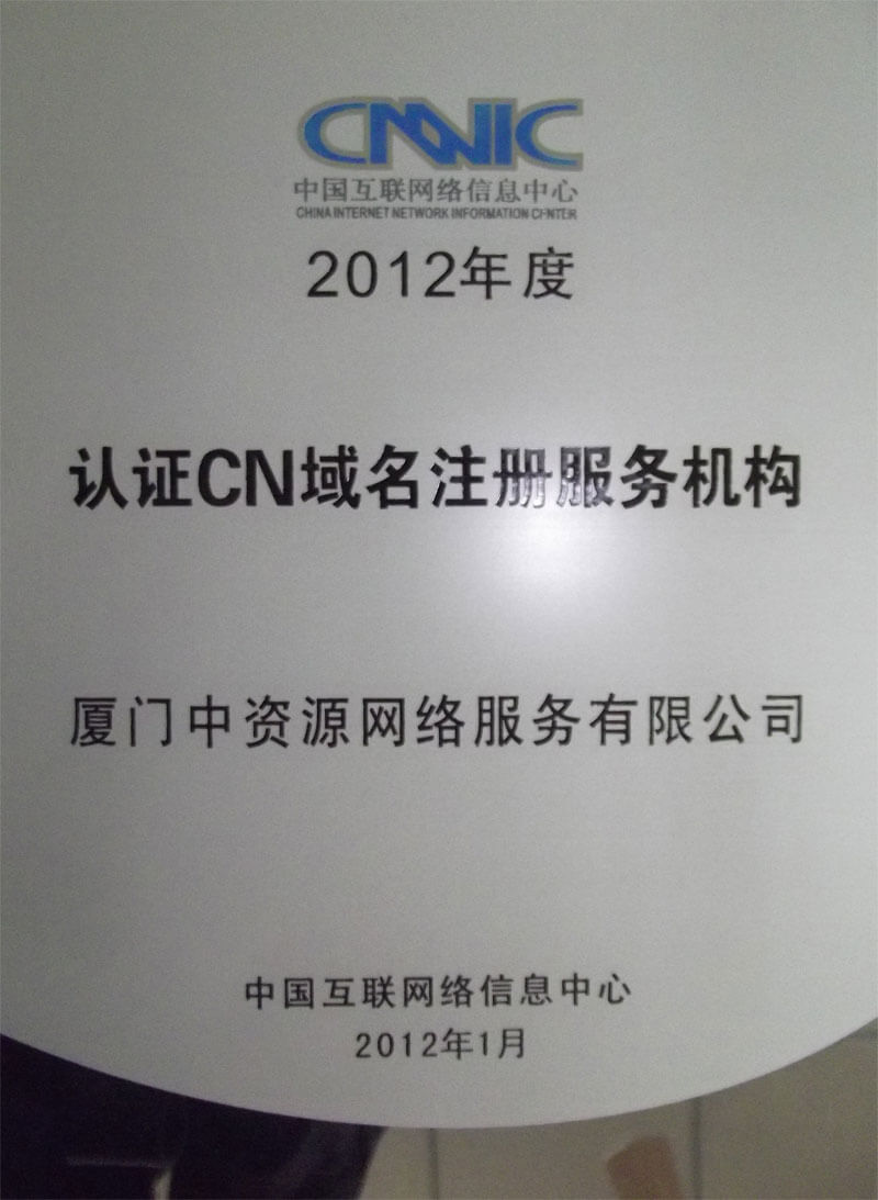 2012年度認(rèn)證CN域名注冊服務(wù)機(jī)構(gòu)