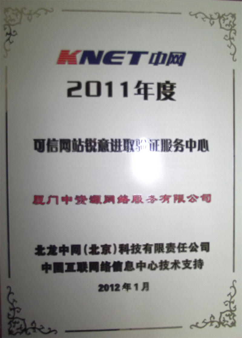 2011年度可信網(wǎng)站銳意進(jìn)取驗(yàn)證服務(wù)中心