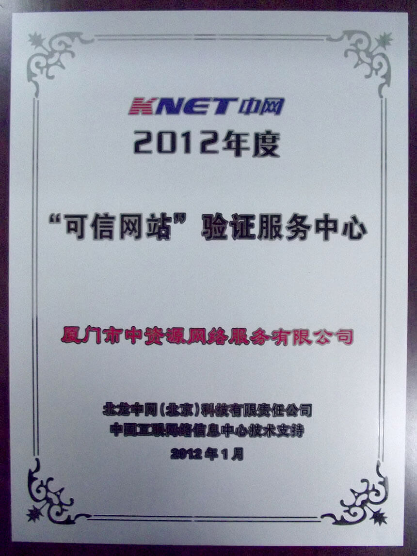 2012年度“可信網(wǎng)站”驗(yàn)證服務(wù)中心