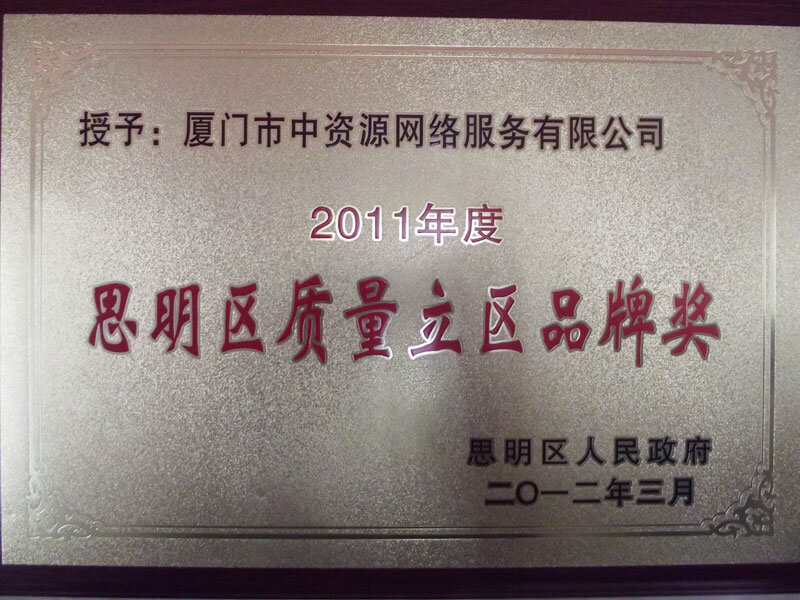 2011年度思明區(qū)質(zhì)量立區(qū)品牌獎(jiǎng)