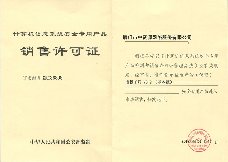 計(jì)算機(jī)信息系統(tǒng)安全專用產(chǎn)品銷售許可證