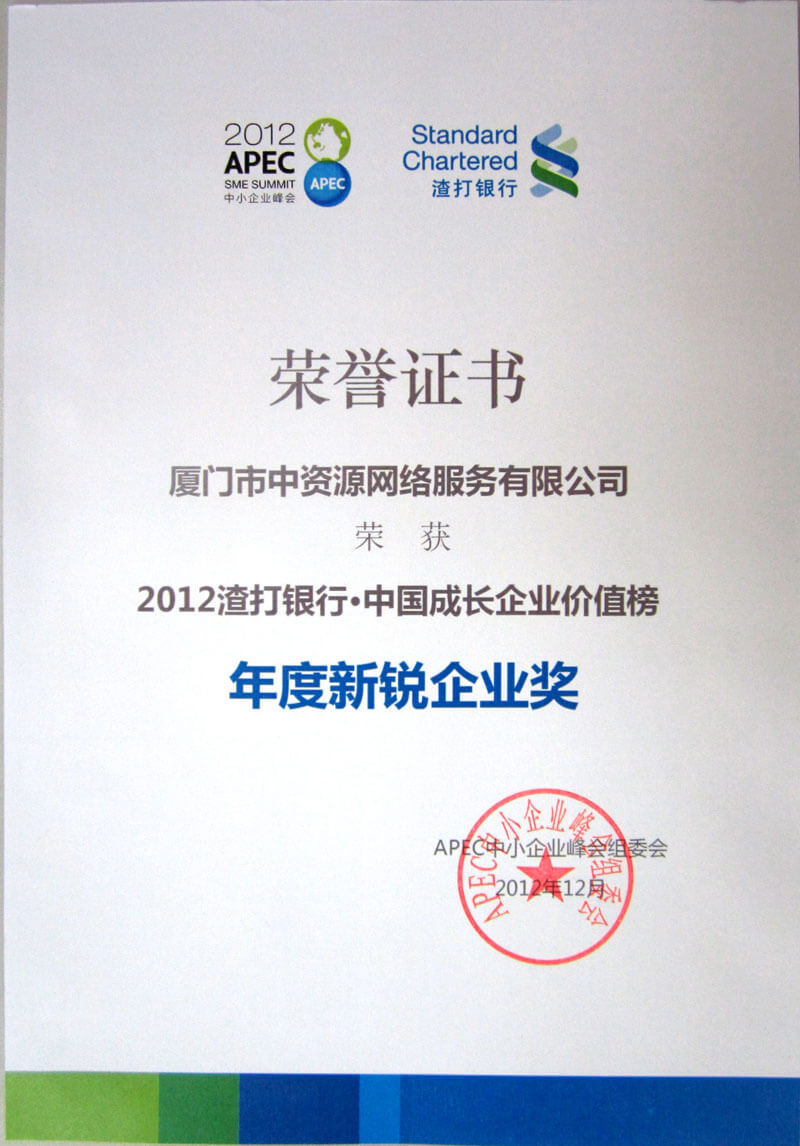 2012中國成長企業(yè)價(jià)值榜年度新銳企業(yè)獎(jiǎng)