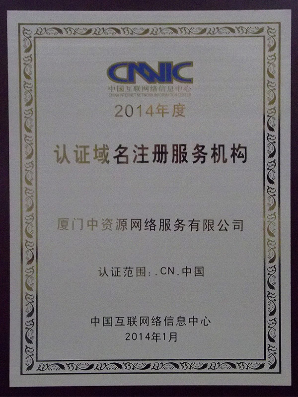 2014年度CNNIC認(rèn)證域名注冊服務(wù)機(jī)構(gòu)