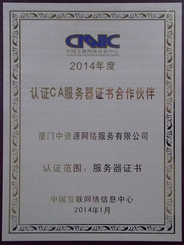 2014年度CNNIC認(rèn)證CA服務(wù)器證書合作伙伴