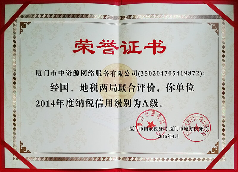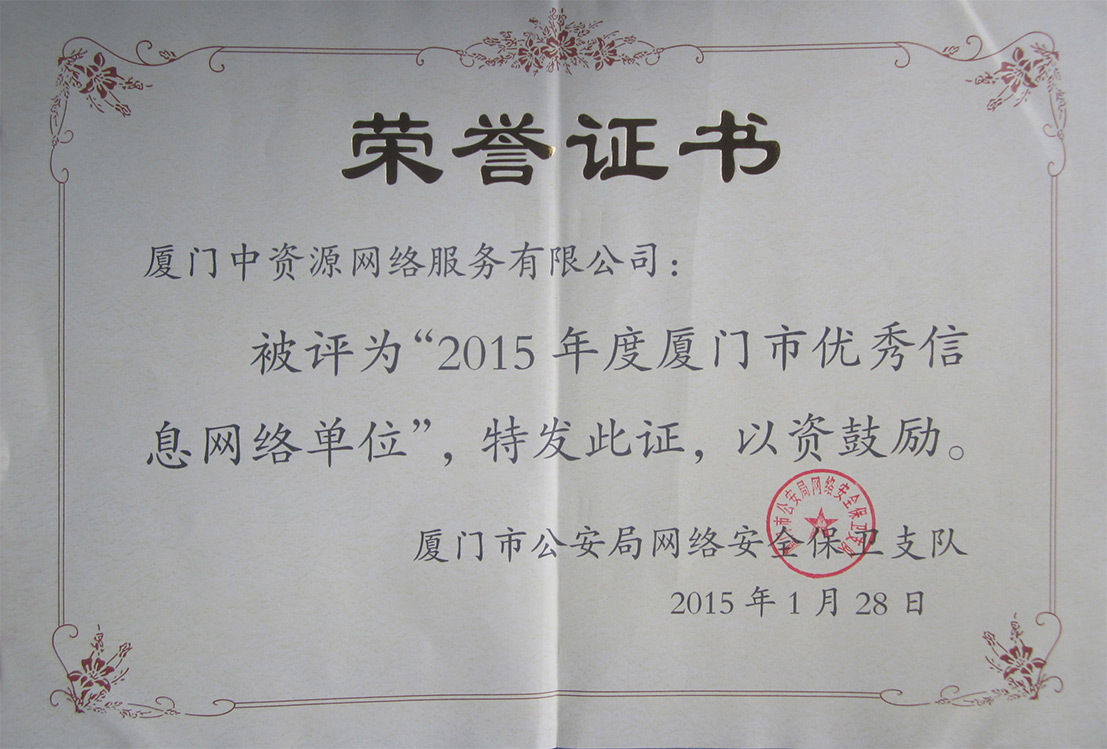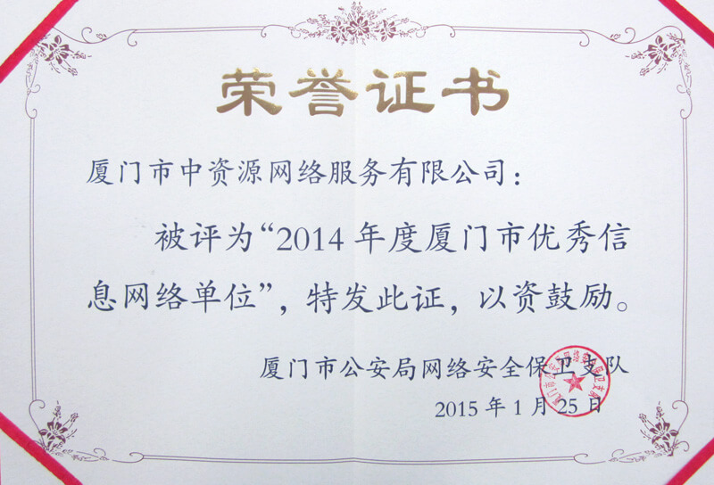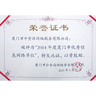 2014年度廈門市優(yōu)秀信息網(wǎng)絡(luò)單位