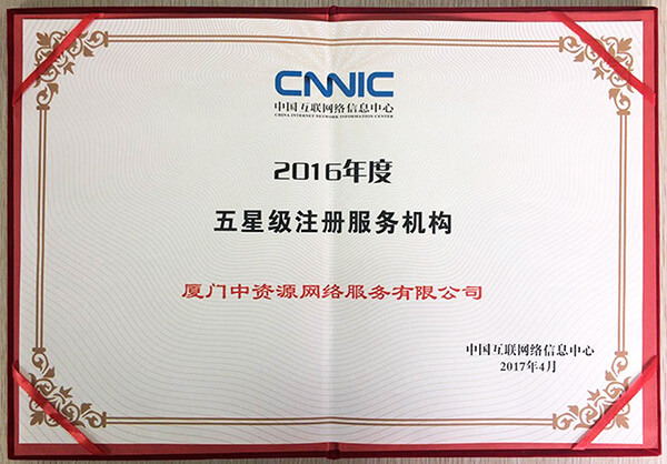 2016年度CNNIC五星級注冊服務(wù)機(jī)構(gòu)