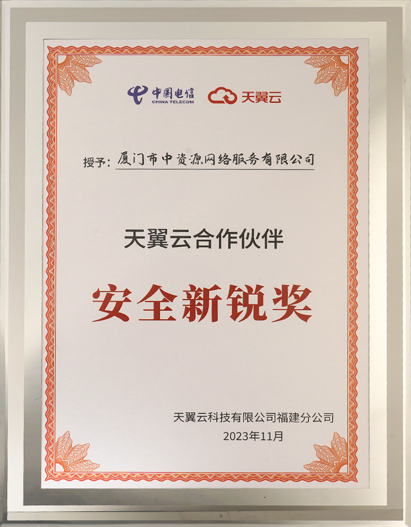 天翼云合作伙伴安全新銳獎(jiǎng)