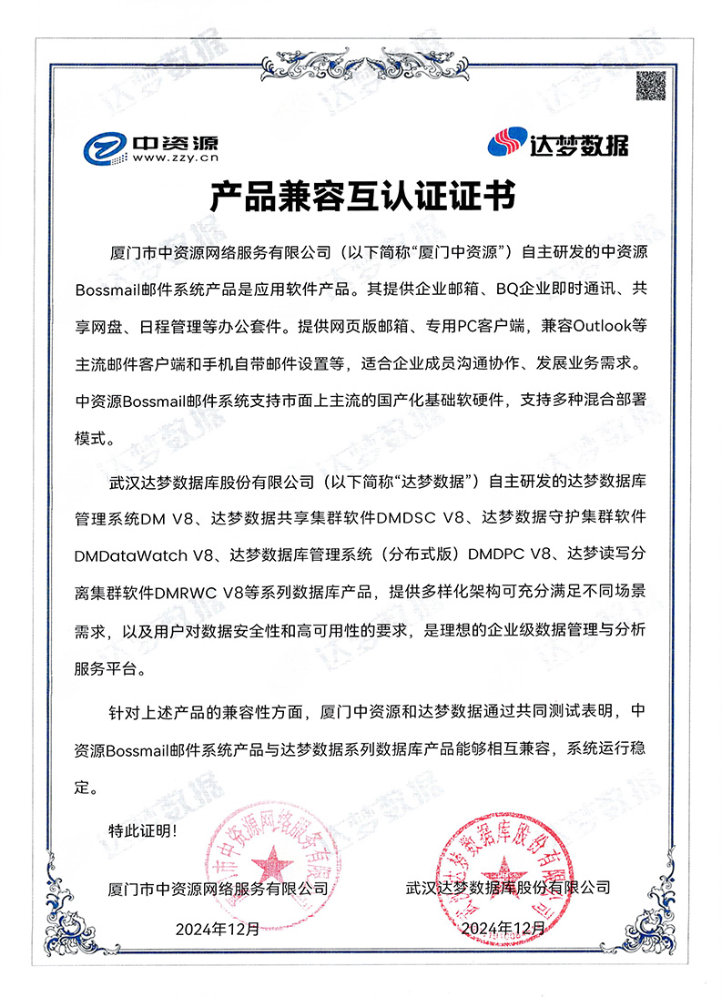 【國產(chǎn)化】達(dá)夢數(shù)據(jù)產(chǎn)品兼容互認(rèn)證證書