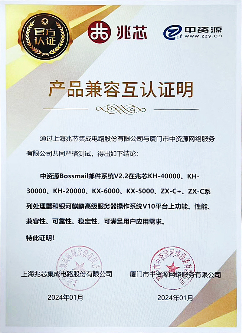 【國產(chǎn)化】兆芯產(chǎn)品兼容互認(rèn)證明