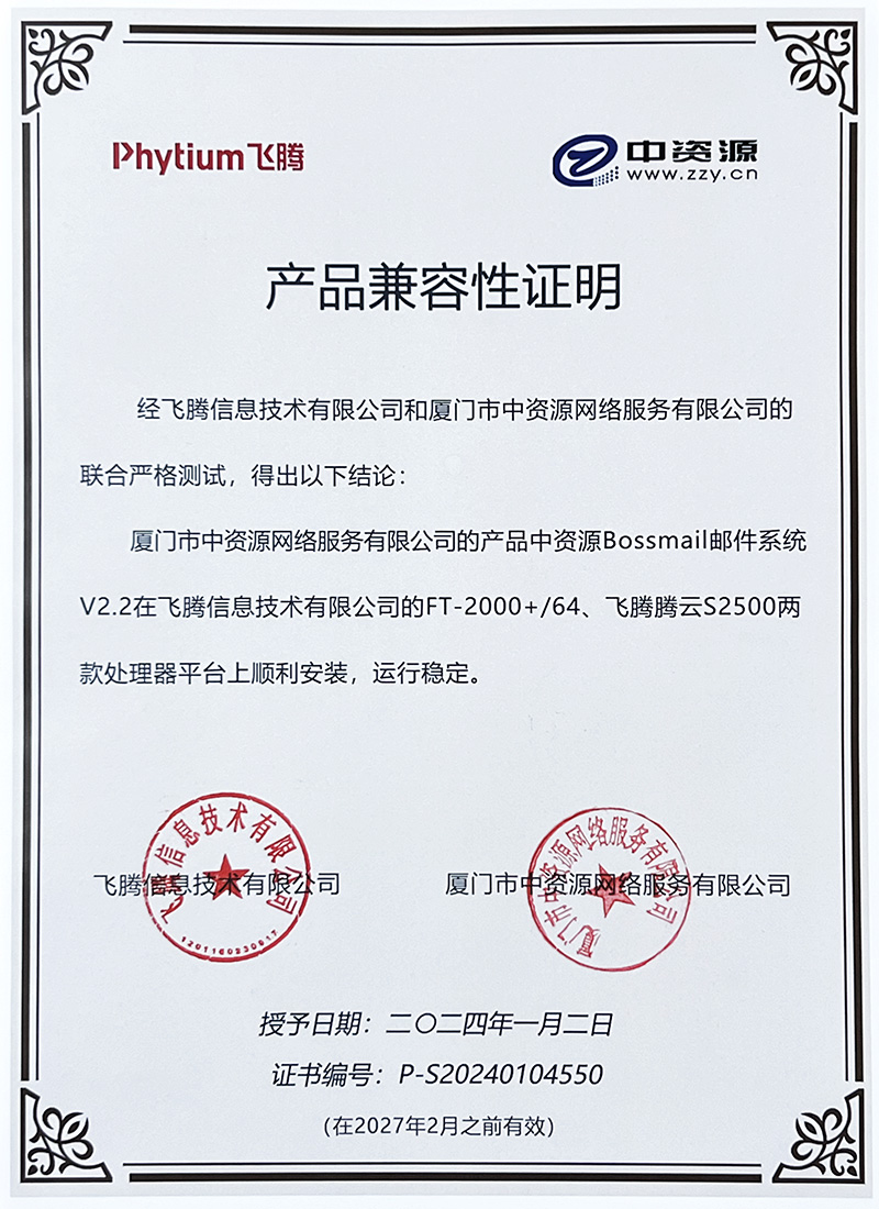 【國產(chǎn)化】飛騰產(chǎn)品兼容性證明