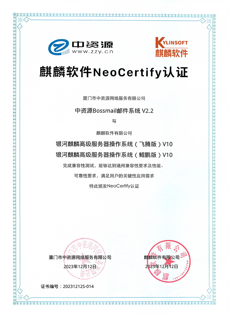 【國產(chǎn)化】麒麟軟件NeoCertify認(rèn)證書