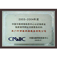 2004年度通用網(wǎng)址金牌注冊服務(wù)機(jī)構(gòu)